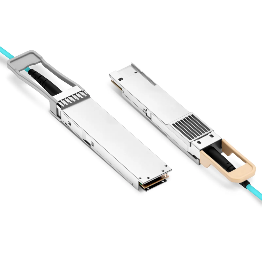 The 400G QSFP-DD to OSFP-RHS active optical cable is a pluggable, parallel, fiber-optic QSFP-DD to OSFP-RHS AOC for Ethernet applications. It is designed for short-range multi-lane data communication and interconnect applicatijons. This active optical cable is compliant with IEEE 802.3bs-400GAUI-8, QSFP-DD MSA, and OSFP MSA.