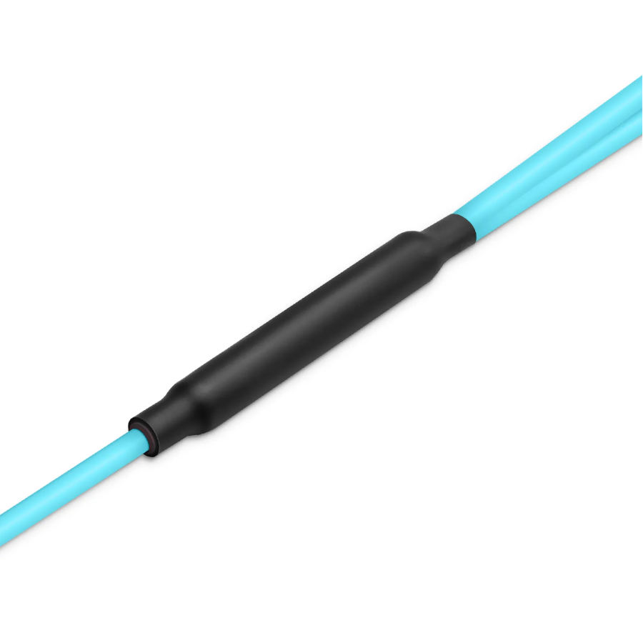 The MTP®-12 to 2 x MTP®-4 APC (Female) OM3 cable is a multimode, 4-channel-to-two 2-channel splitter fiber cable, which uses 8 active fibers to transmit light and 4 inactive fibers as strength members. The APC end has an 8-degree polished angle to deflect internal optical back reflections from entering the transceiver and distorting the signal quality.